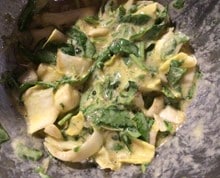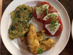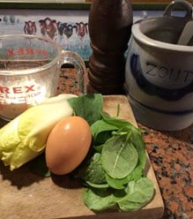 Er waren een paar restantjes overgebleven van andere maaltijden,….een Brussels lof, wat spinazie blaadjes , en een handje vol sterkers van zaadjes gegroeid in een bakje op het aanrecht.