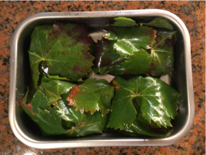 Voordat de bladeren van de druivenstruik gaan vallen wil ik deze maand een recept voorstellen waar deze bladeren nog goed voor te gebruiken zijn.