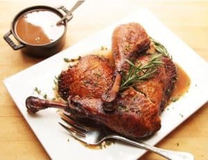 - Serveer met geroosterde aardappels en appelmoes.