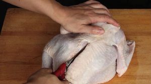 - Snij de vleugels in twee stukken bij het gewricht.
