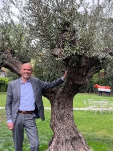 olijfboom geplant in de tuin van de residentie in Madrid. Hij is prachtig! Het is een hele oude olijfboom met veel karakter. Het symboliseert voor mij een waardering voor de kracht van Spanje, de prachtige tradities van het land en de fenomenale, eeuwenoude cultuur van Spaanse olijfolie. Nu nog zelf olijfolie leren makenโฆ.