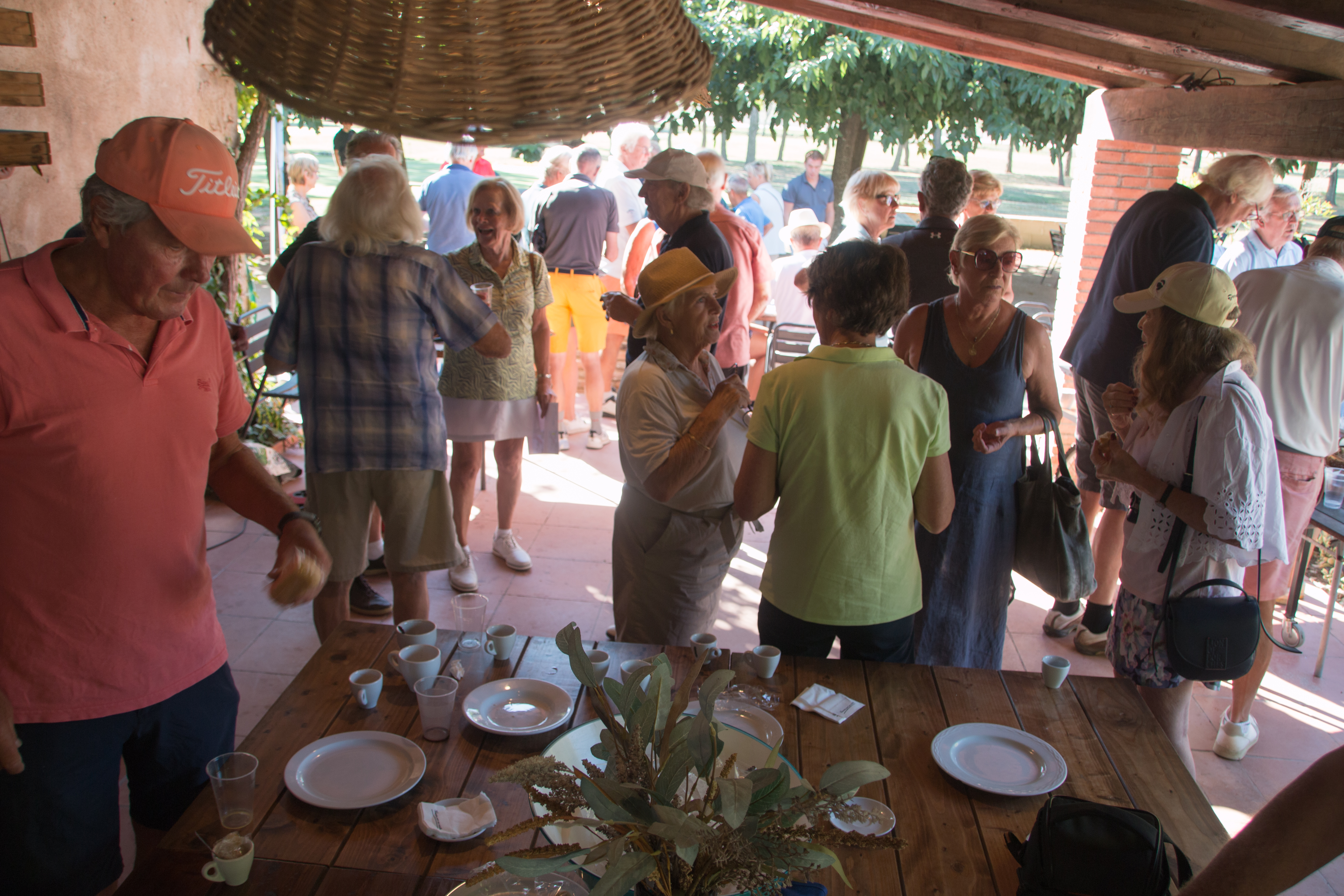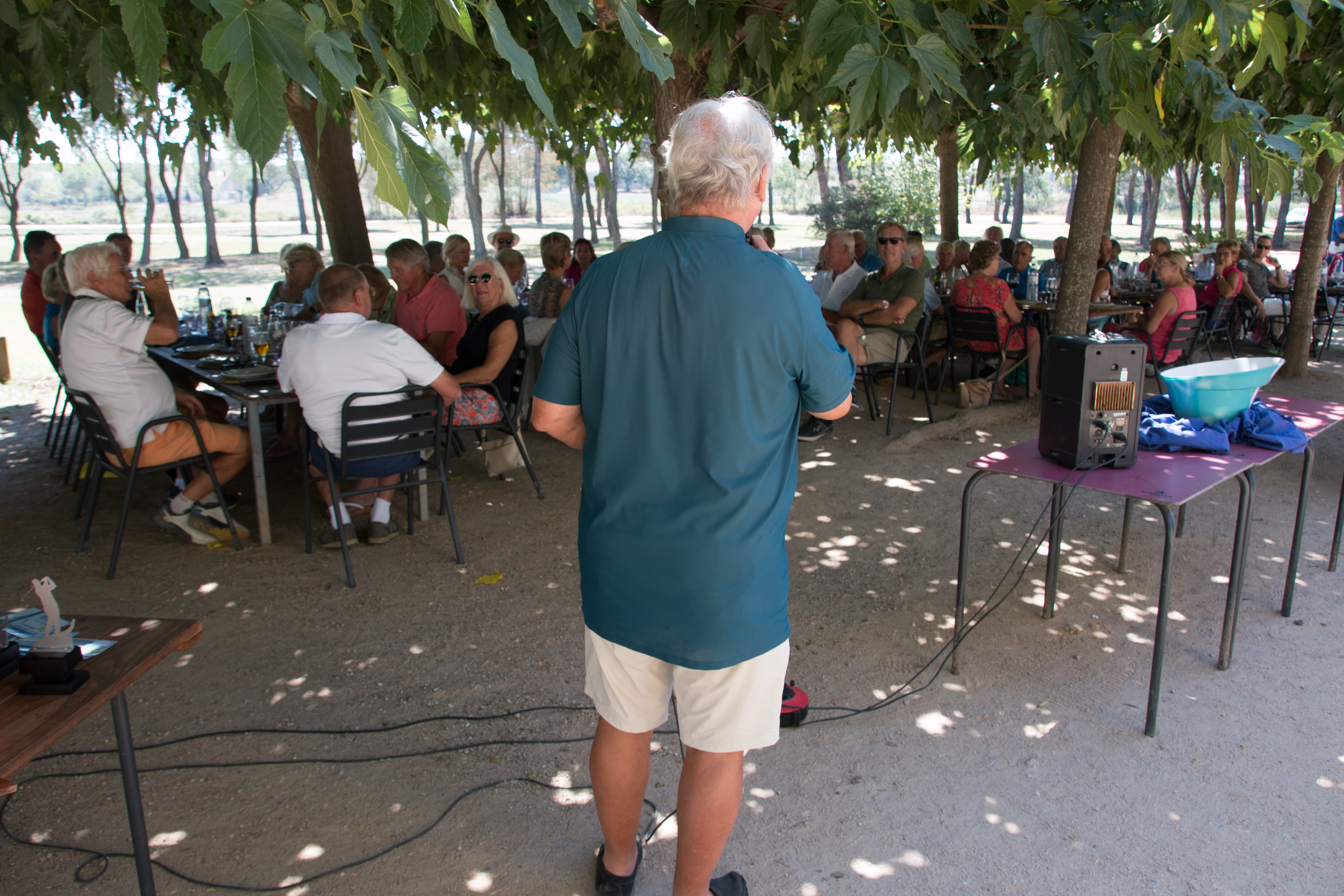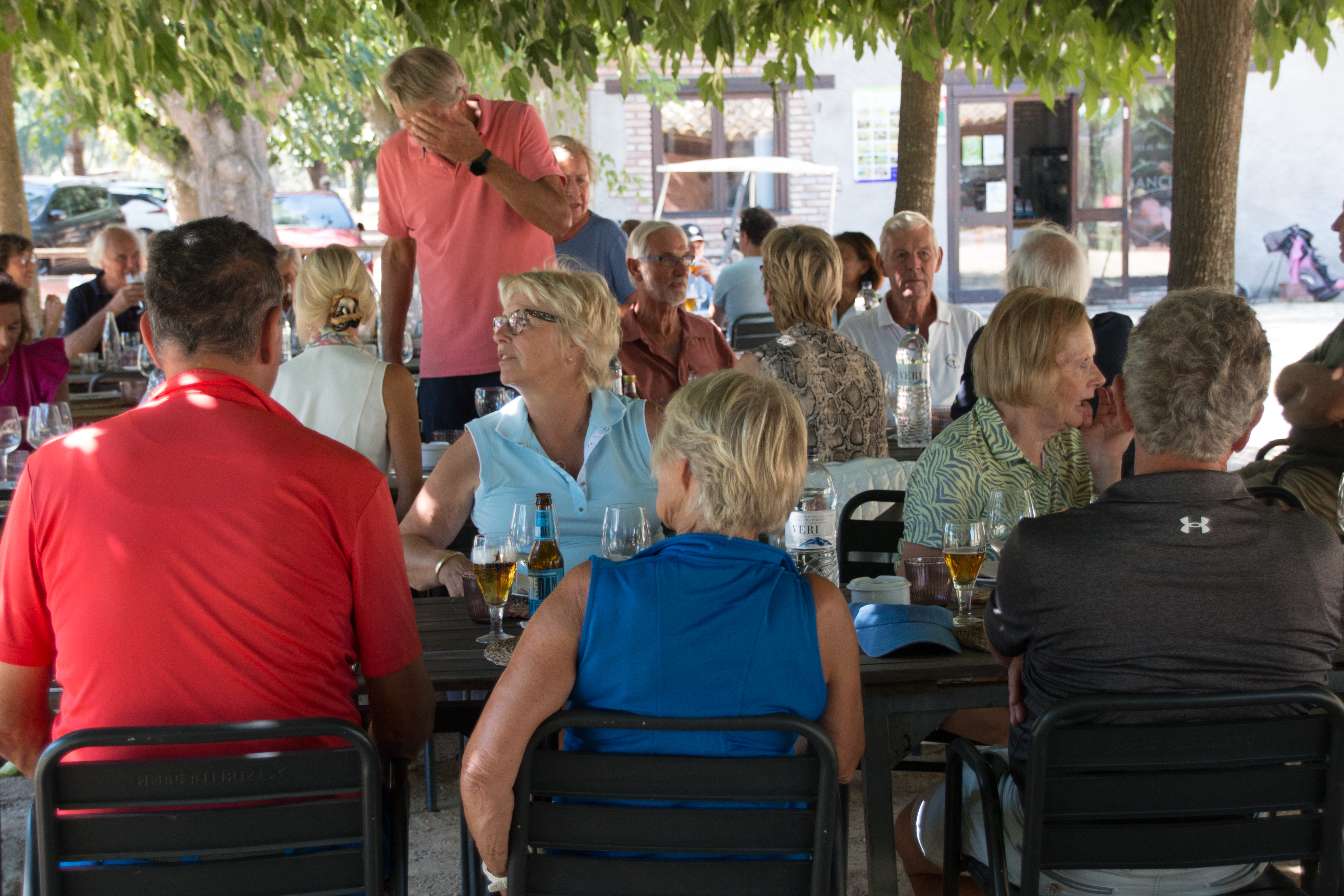 Na het spelen werd een smakelijke lunch geserveerd op een mooie plek onder het bladerdek van de platanen. Tussen de gangen door werd een tombola gespeeld met leuke prijsjes, maar de echte prijzen gingen naar de winnende spelers. Het spelniveau was dit jaar uitzonderlijk goed.