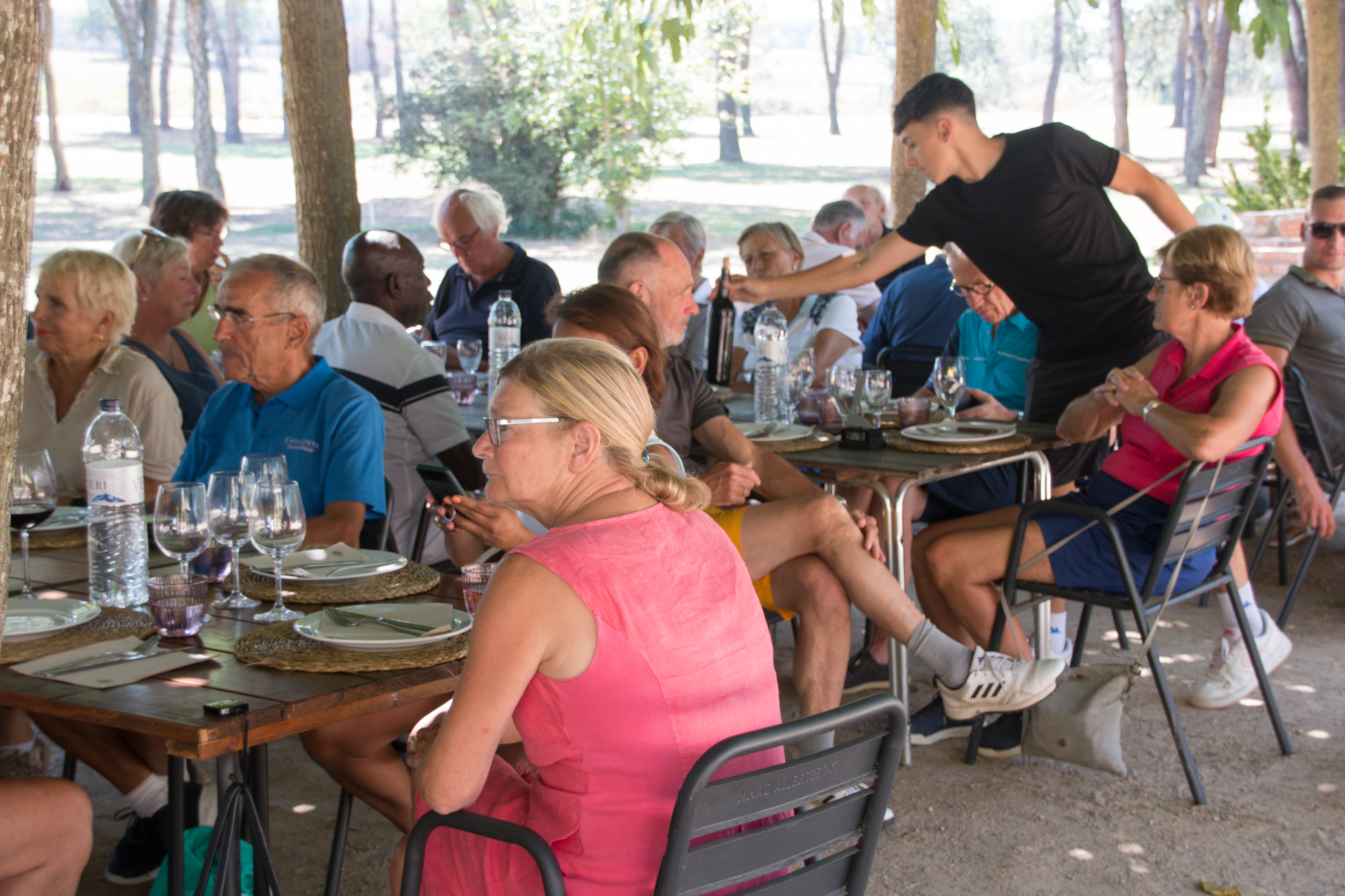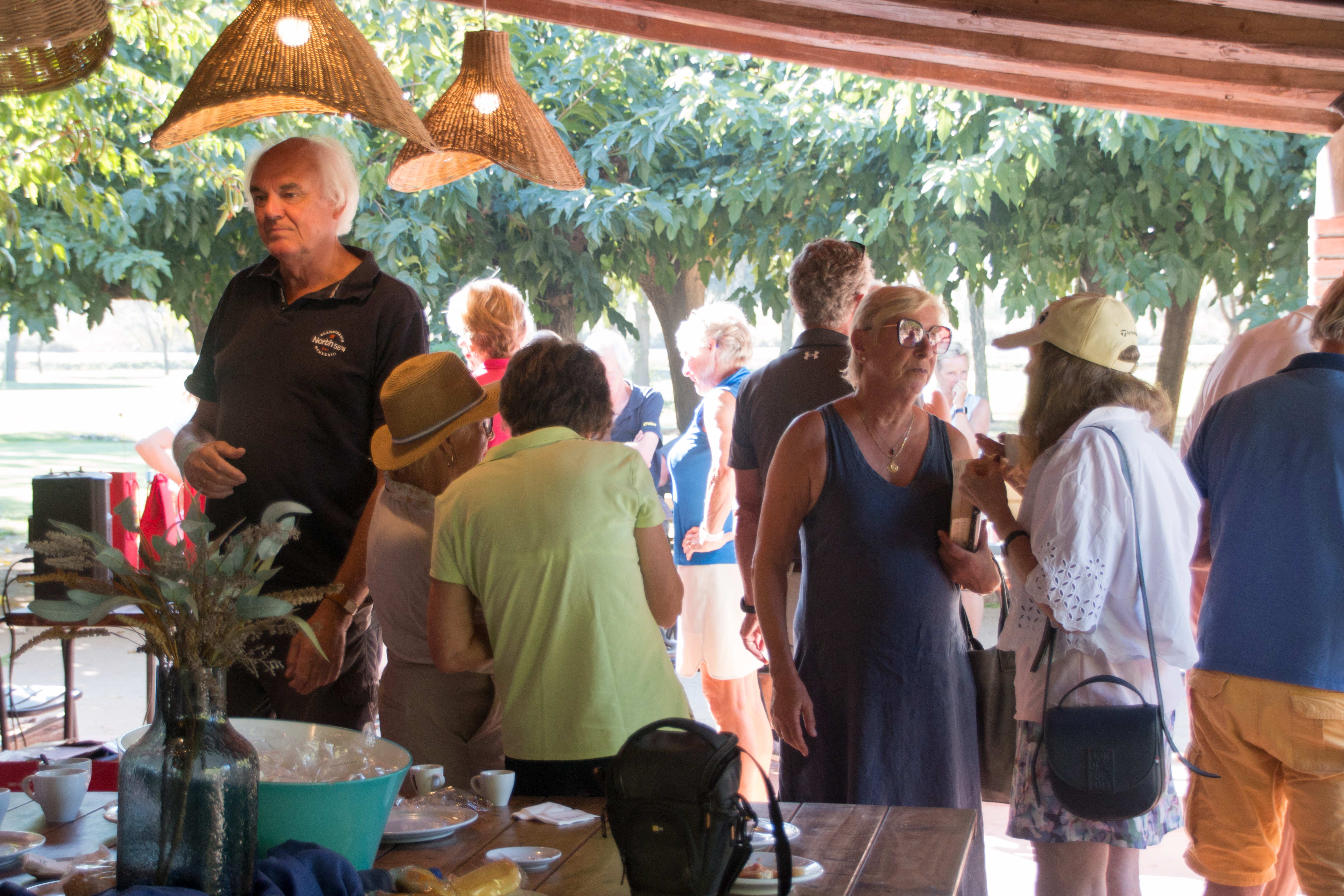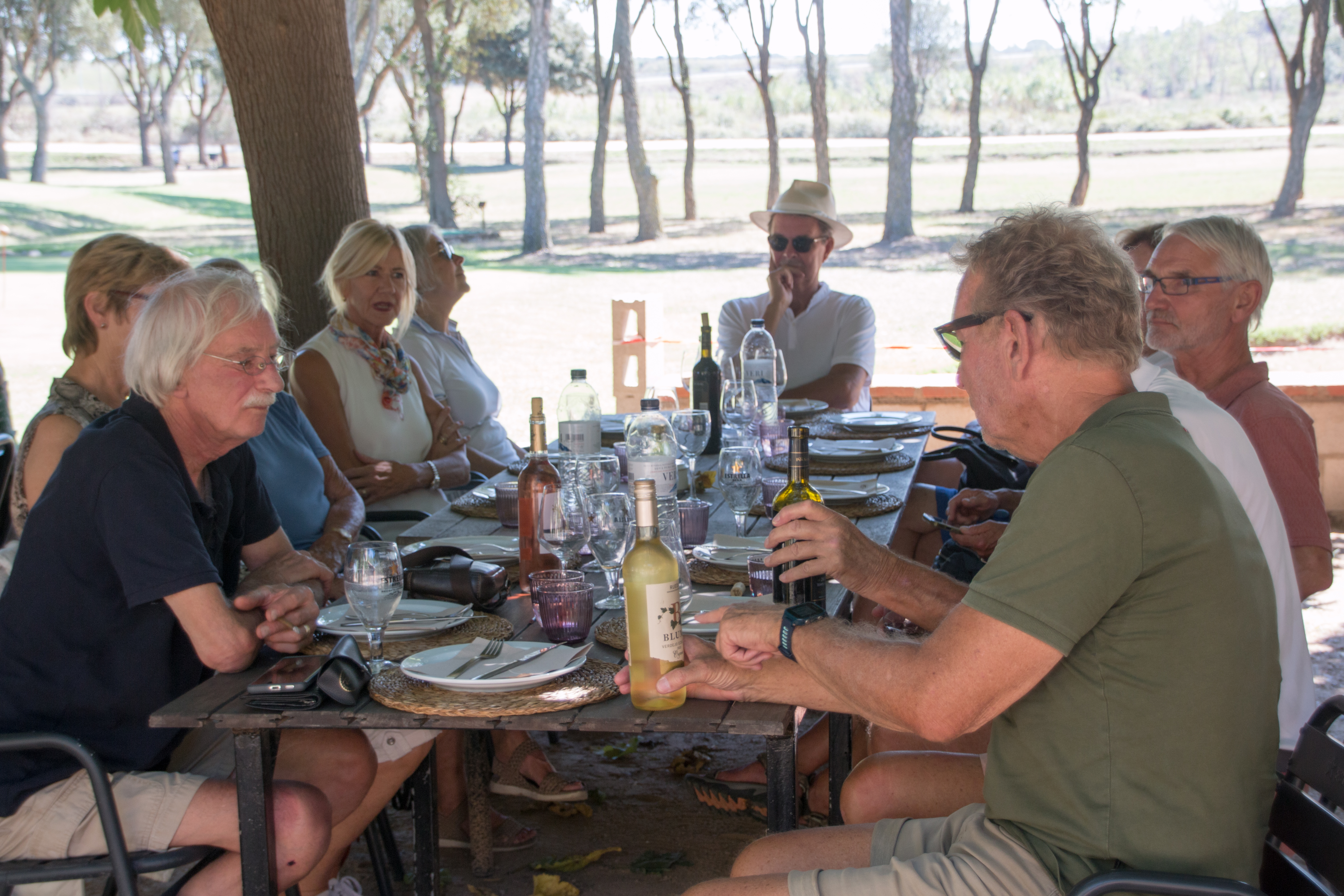 Na het spelen werd een smakelijke lunch geserveerd op een mooie plek onder het bladerdek van de platanen. Tussen de gangen door werd een tombola gespeeld met leuke prijsjes, maar de echte prijzen gingen naar de winnende spelers. Het spelniveau was dit jaar uitzonderlijk goed.