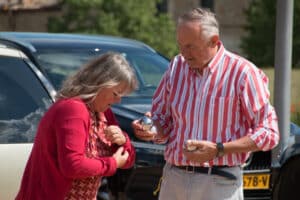 En wat hadden we veel geluk met het uitblijven van een regenbui! Uiteindelijk bleken er drie teams met eenzelfde aantal punten als winnaar te zijn geëindigd. Om die reden werd gekeken welke van de teams de minste tegenpunten had. Dat waren team Tino Kaandorp/ Henny Teerling en team Joost van de Stelt / Frits Weel (invaller). Thom Claassen/ Dick Maans vielen als derde winnend team af. Na een finalespel ging het team Joost / Frits er met de wisseltrofee, een ontwerp van Fred Tuinman, vandoor. Dit winnend team kreeg daarnaast een klein toepasselijk kunstwerk overhandigd wat zij mogen behouden, eveneens van de hand van Fred.