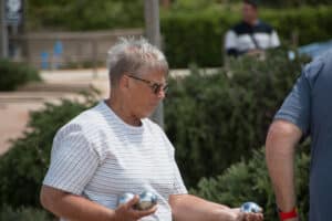 Wij verplaatsten ons naar de speelbanen met een stoel onder de arm om vanaf de eerste rang de verrichtingen van een ieder te kunnen volgen. Beter bovenhands dan onderhands rolden we de punten bij elkaar. Een aantal keren moest met behulp van een plantenstengel worden gemeten welke bal werkelijk het dichtst bij de but lag, dus geen twijfel over hoe serieus men speelde.