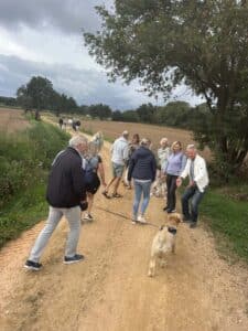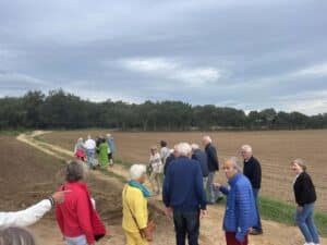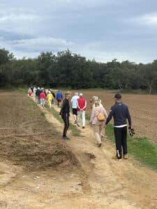 Het was winderig en best een beetje koud toen we startten. Maar al gauw was de stemming erin en werd er aardig doorgestapt. Al snel na de start werd er gesplitst in uur- en halfuur wandelingen. De half uur lopers begonnen in het bos en we zagen warempel een paar aparte paddenstoelen.Die waren gelijk vastgezet. Na een kleine klim zagen we wat open veld en al gauw kregen we de uurwandelaars in zicht die ons tegemoet kwamen. Zoetjesaan tekende zich toch een verschil in tempo af in onze groep. Er was een klein groepje dat een aardig tempo had en eigenlijk qua sterkte meer bij de uurlopers hoorde. Wachten is dan blijkbaar niet zo leuk. Uiteindelijk was de samenhang in de groep niet meer te handhaven en liepen de “snellen” alvast door naar het dorp terwijl degenen die wat moeizamer liepen daar uitendelijk ook wel kwamen. Dat vond ik jammer, maar uiteindelijk had iedereen toch genoten van een mooie wandeling.