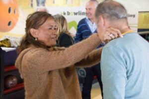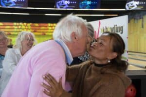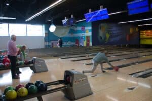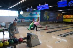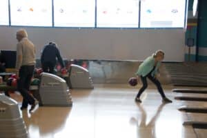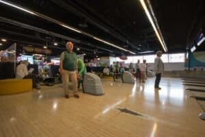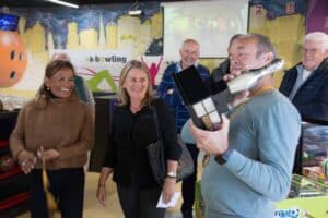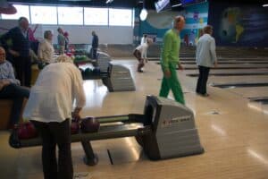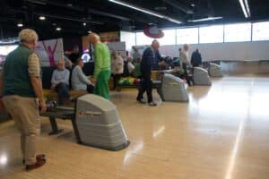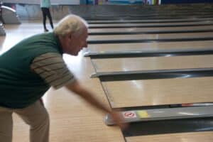 Met een beetje geluk zag je na een worp de tien pins blijvend verdwijnen, maar dit was niet voor iedereen weggelegd al waren er veel mooie acties bij. We zagen ook ballen in de goot belanden en stuiterballen. Het hield de spanning erin.