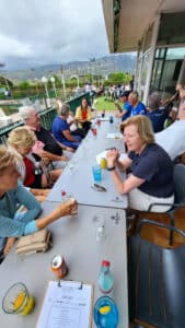 Uiteraard bespraken we onze hervonden sportieve uitspattingen op het terras onder het genot van een glaasje. Een deel van de groep bleef hangen om hongerige magen te vullen.