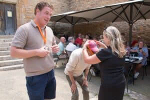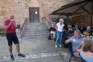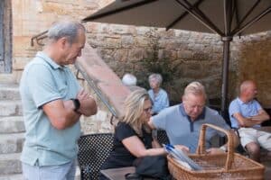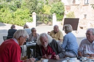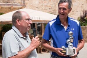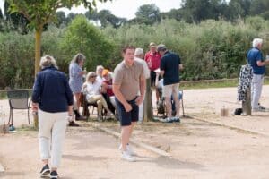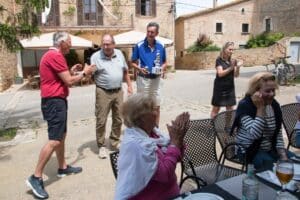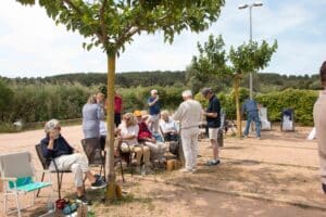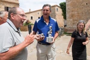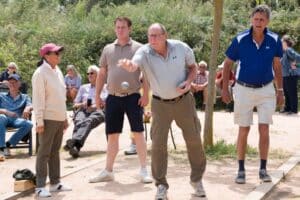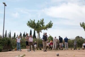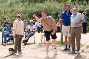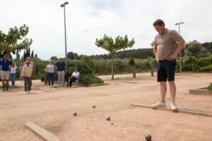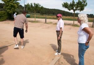 Een zonnetje hier, een wolkje daar: 51 enthousiaste leden treffen elkaar bij Restaurant Can Dolç in Sant Feliu de Boada voor het jaarlijkse VNPG-petancatoernooi. Het bestuur is al vroeg uit de veren, confisqueert een deel van het parkeerterrein en slooft zich uit met schoffels om de ‘banen’ speelklaar te maken.