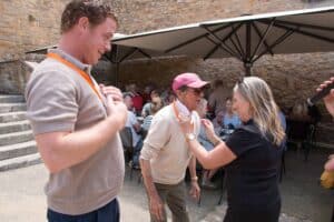 De deelnemers krijgen een gastvrij onthaal met koffie of thee en kleine croissants. Een ontspannen begin om wakker te worden, want 10 uur in de ochtend blijkt voor avondmensen best vroeg. Maar laten we niet met de bal spelen, ofwel: geen getreuzel, onze pelotas moeten gaan rollen!